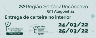 O Conselho Regional de Psicologia da Bahia (CRP-03), por meio da Comissão de Interiorização (COMINTER), comunica que entrega de Carteira […]