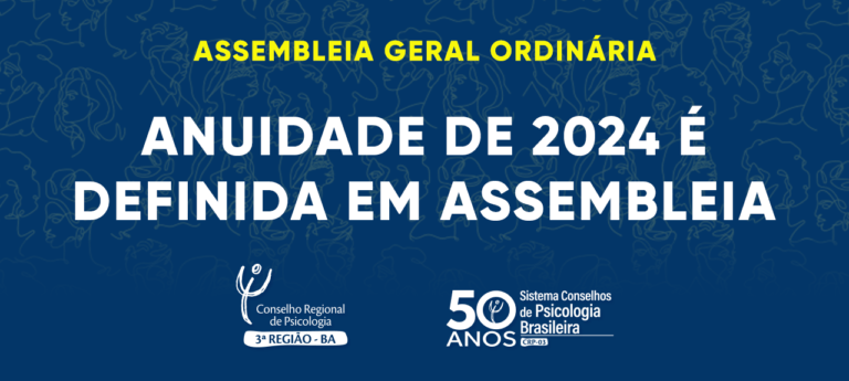 O Conselho Regional de Psicologia da Bahia (CRP-03) realizou a Assembleia Geral Ordinária na manhã da última quinta-feira (31/08) para definir o valor da anuidade, taxas e emolumentos para o exercício de 2024. Com 127 psicólogas/os presentes, a votação definiu o reajuste de 2,69% considerando o Índice Nacional de Preços ao Consumidor (INPC) do mês de junho. A atividade aconteceu no formato online pelo quarto ano consecutivo, com o propósito de possibilitar a participação de profissionais de todas as regiões do estado.