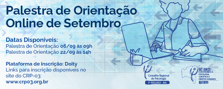 O Conselho Regional de Psicologia da Bahia (CRP-03) disponibilizou o calendário de setembro para Palestras de Orientação. A participação é requisito obrigatório na entrega de Carteiras de Identificação Profissional (CIP) para primeira inscrição.