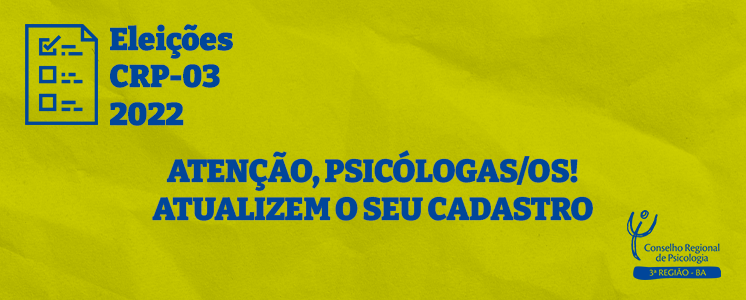 A atualização de dados é imprescindível para que as/os profissionais estejam aptas/os a votar na Consulta Nacional para o CFP e nas eleições para os Conselhos Regionais que serão realizadas entre 23 e 27 de agosto de 2022. Para isso, as/os psicólogas/os devem atualizar o seu cadastro até o dia 16 de agosto de 2022, através do site: www.cadastro.cfp.org.br/atualizadados/conselhos.jsf.