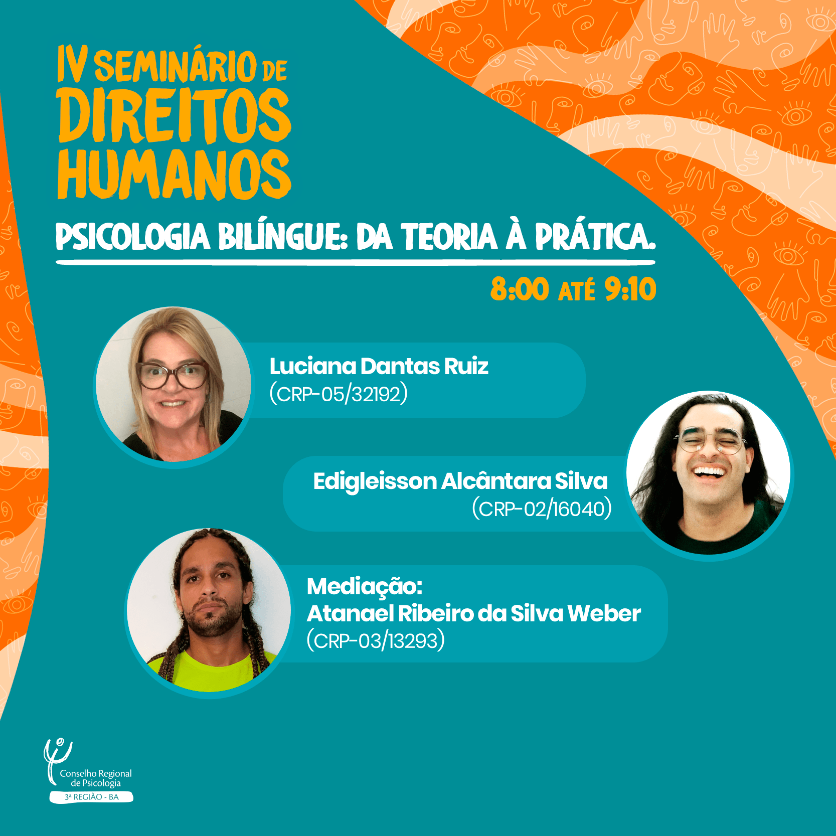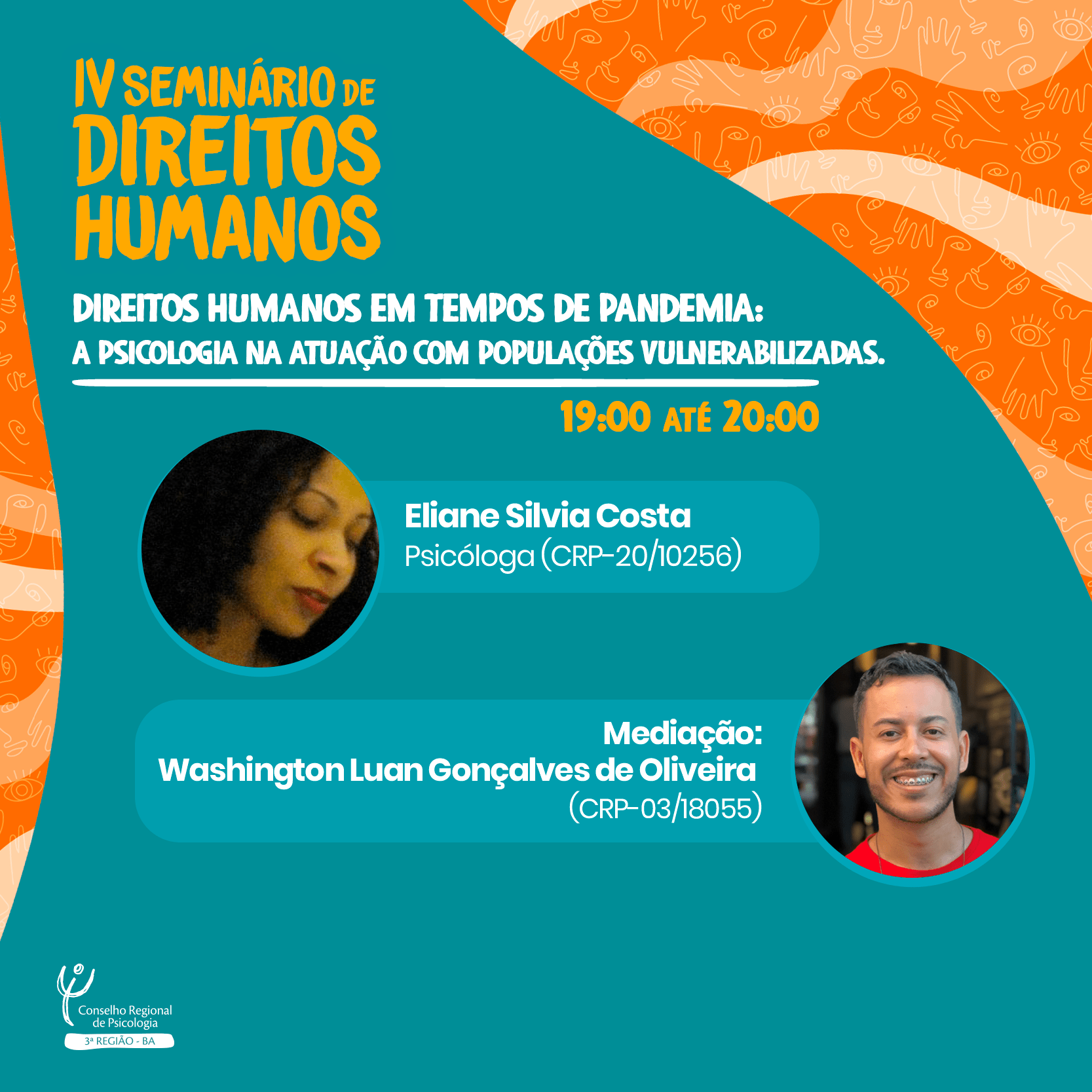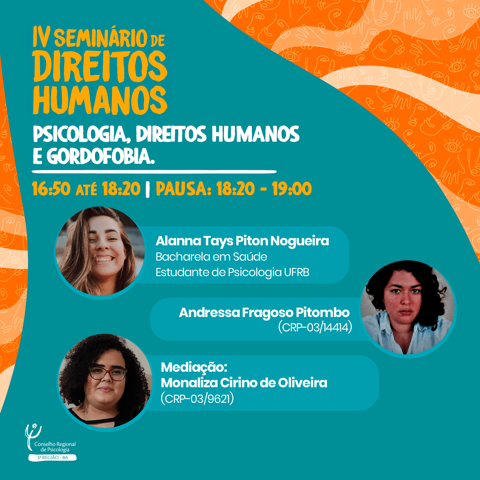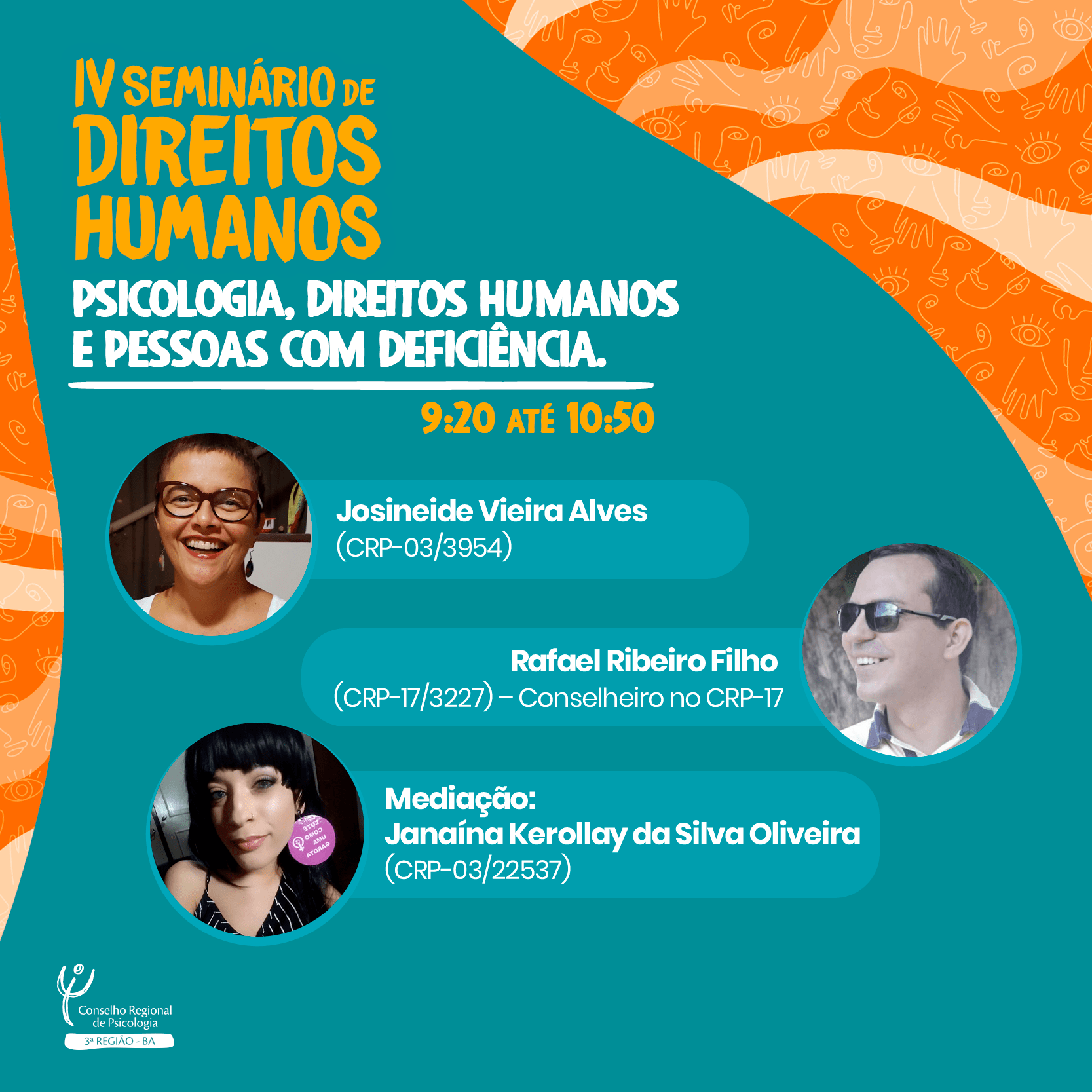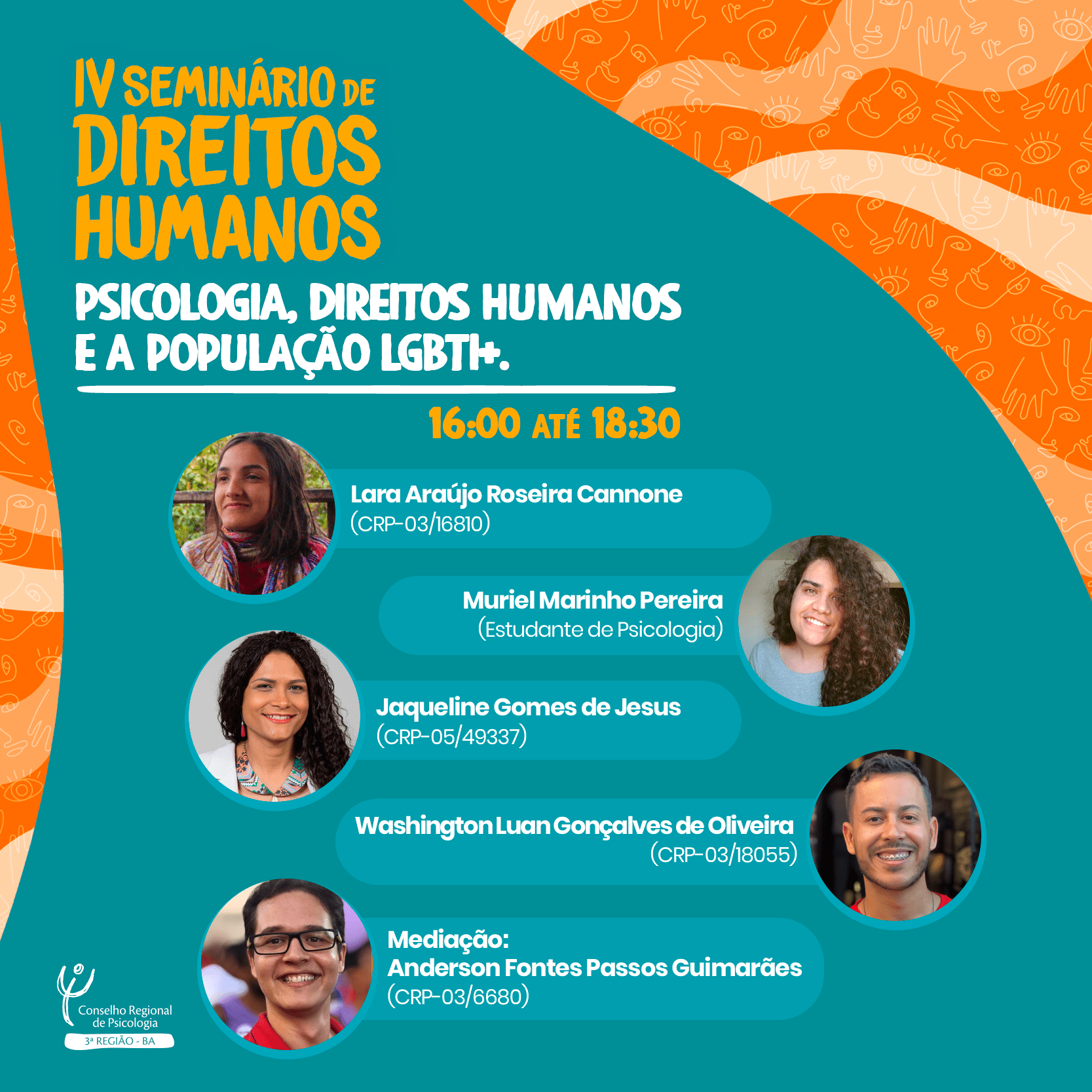 Nos dias 10 e 11 de dezembro deste ano, o Conselho Regional de Psicologia da Bahia, por meio da Comissão de Direitos Humanos (CDH), realiza o IV seminário de Direitos Humanos.