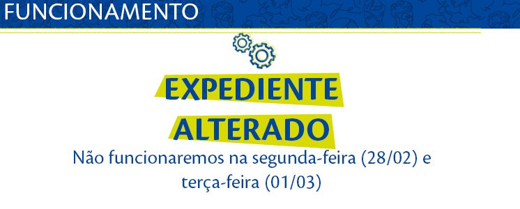 O Conselho Regional de Psicologia da Bahia (CRP-03) informa que a autarquia terá suas atividades suspensas nos dias 28/02 e 01/03/2022. O expediente será retomado no dia 02/03, quarta-feira.