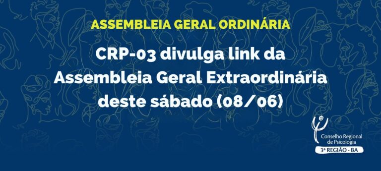 A Assembleia está marcada para este sábado, 08 de junho, na modalidade on-line, a partir das 9h, em primeira convocação, e às 9h30, em segunda convocação com qualquer número de psicólogas/os presentes.