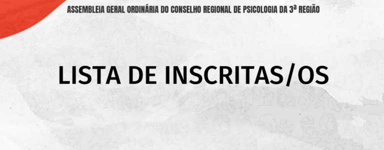 O Conselho Regional de Psicologia da Bahia (CRP-03) divulga a lista das/os psicólogas/os inscritas/os na Assembleia Geral Ordinária, que será realizada no dia 25 de agosto de 2021, às 8h, em primeira convocação e às 8h30 em segunda convocação. A Assembleia vai pautar a aprovação do valor da anuidade, taxas e emolumentos, para o exercício de 2022.