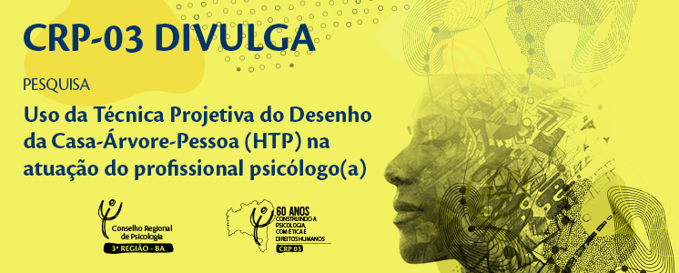 O Conselho Regional de Psicologia da Bahia (CRP-03) divulga que a Pesquisa “Uso da Técnica Projetiva do Desenho da Casa-Árvore-Pessoa (HTP) na atuação do profissional psicólogo(a)” está recebendo contribuições por meio de questionário disponível em: https://forms.gle/prPcvyu5hoJf1xNC7.
