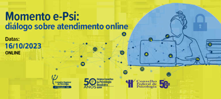 O Conselho Regional de Psicologia da Bahia (CRP-03) promove a quarta edição do “Momento e-Psi”, no dia 16 de outubro, das 9h às 10h30. O encontro tem como propósito orientar a categoria sobre as normas para atendimento virtual, regulamentado através da Resolução CFP nº 11/2018 e da Resolução CFP nº 4/2020. O Momento e-Psi é exclusivo para profissionais registradas/os, com acesso autorizado mediante inscrição prévia na plataforma Doity (clique aqui).