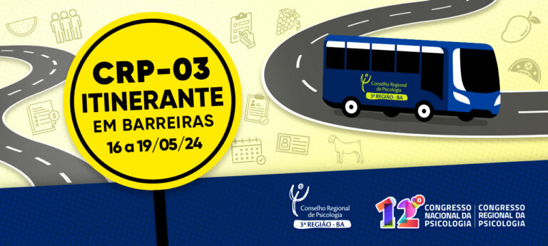 O Conselho Regional de Psicologia da Bahia (CRP-03) promove, de 16 a 19 de maio, em Barreiras-BA, a primeira edição de 2024 do projeto CRP-03 Itinerante. A programação de atividades é voltada para atender as demandas das/os profissionais que residem e/ou atuam na região Oeste.