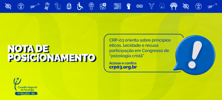 O Conselho Regional de Psicologia da 3ª Região – CRP-03 (Bahia), entidade dotada de personalidade jurídica de direito público, com autonomia administrativa e financeira, nos termos da Lei nº 5.766, de 20 de dezembro de 1971, no intento de zelar pela fiel observância dos princípios éticos e disciplinares da profissão, vem, através desta Nota, informar que: