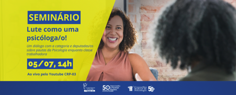 O piso salarial, a garantia das 30hs, condições dignas de trabalho são pautas de grande relevância para nossa categoria. A atuação da/o profissional de Psicologia nas Políticas Públicas será o tema de debate online promovido pelo Conselho Regional de Psicologia (CRP-03), no próximo dia 05/07, quarta-feira, a partir das 14h. Uma iniciativa da Comissão de Políticas Públicas da autarquia, o evento traz o tema “Lute como uma psicóloga/o! Um diálogo com a categoria, CRP 03 e deputadas/os sobre pautas da Psicologia enquanto classe trabalhadora” e terá transmissão ao vivo pelo canal do CRP-03 no Youtube.