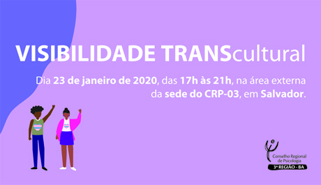 No mês da visibilidade trans, o Conselho Regional de Psicologia da Bahia (CRP-03) realizará um evento intitulado Visibilidade TRANScultural. A partir das 17h, do dia 23 deste mês, o Conselho será sede de discussões sobre a despatologização das identidades trans e resistências, através de mesas de debate e sarau cultural.