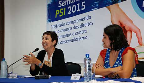 Para dar início às atividades da Semana PSI 2015 em Salvador, o CRP-03 promoveu a palestra e debate sobre Clínica & Política, na noite do dia 24 de agosto. A palestra foi conduzida pela psicanalista e doutora em Saúde Coletiva da UERJ, Ana Cristina Figueiredo; e mediada pela pesquisadora e doutora em Saúde Pública da UFBA, Vládia Jucá.