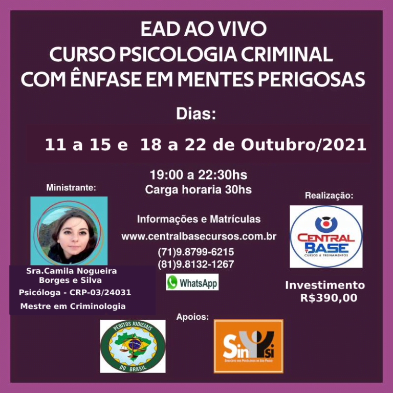 EAD AO VIVO: Curso de Psicologia Criminal com ênfase mentes perigosas