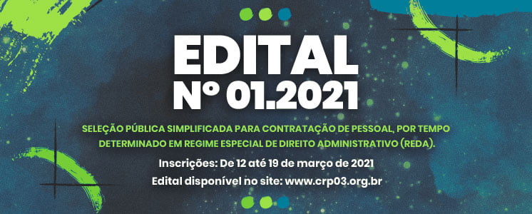 Confira o edital: EDITAL Nº 01.2021 – Seleção simplificada – CRP-03