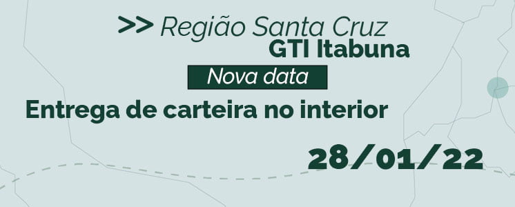 As/os profissionais de Itabuna e região Santa Cruz devem retirar a Carteira de Identidade Profissional (CIP) em nova data. A entrega que estava marcada para o dia 20 de janeiro foi alterada para o dia 28 do mesmo mês, das 9h às 11h, no Escritório de Apoio (Avenida Princesa Isabel, Ed. Trade Center, 1º andar, sala 114, São Caetano, CEP 45607-288).
