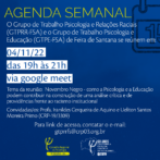 Data: 04/11/2022 (Sexta-Feira). Horário: 19:00 às 21:00. Tema: Novembro Negro – Como a Psicologia e a Educação podem contribuir na […]