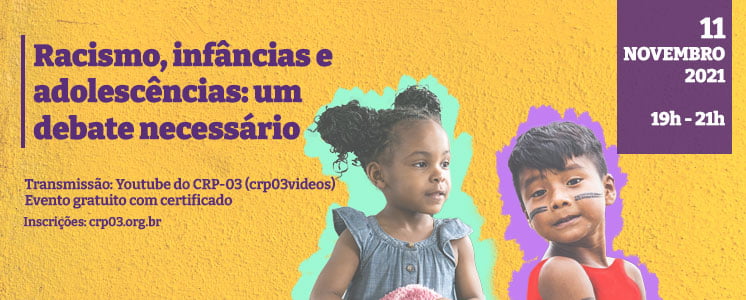 No mês da Consciência Negra, o Grupo de Trabalho Defesa dos Direitos das Crianças e das/os Adolescentes (GTDDCA), pertencente à Comissão de Direitos Humanos do Conselho Regional de Psicologia da Bahia (CRP-03), organiza o evento Racismo, infâncias e adolescências: um debate necessário. A atividade está marcada para o dia 11 de novembro, das 19h às 21h, com transmissão pelo Youtube do Conselho, no canal crp03vídeos. Para receber o certificado, a/o participante deve se inscrever através do Doity: https://doity.com.br/racismo-infancias-e-adolescencias-um-debate-necessario/inscricao.