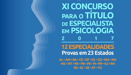 O Conselho Federal de Psicologia (CFP) recebe inscrições, até 20 de dezembro de 2017, para o concurso de provas e títulos para concessão do título de especialista em Psicologia. A concessão do título é regulada pelas Resoluções CFP nº 13/2007 e nº 03/2016.
