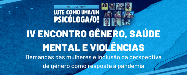 Demandas das mulheres e inclusão da perspectiva de gênero como resposta à pandemia. Este é o tema do IV Encontro de Gênero, Saúde Mental e Violências, que será realizado nos dias 26/08/2021 (das 14h às 20h) e 27/08/2021 (das 8h30 às 18h). O evento será transmitido no Youtube, Facebook e Intagram do CRP-03. Interessadas/os em participar podem se inscrever por meio do link: https://doity.com.br/iv-encontro-gnero-sade-mental-e-violncias-demandas-das-mulheres-e-inclusao-da-perspectiva-de-genero-/inscricao