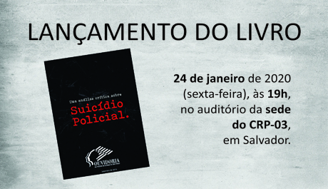 Nesta sexta-feira (24), o Conselho Regional de Psicologia da Bahia (CRP-03) discute os possíveis fenômenos envolvidos no sofrimento psíquico de policiais e dificuldades relacionadas à atenção em saúde mental, durante o lançamento do livro “Uma análise crítica sobre suicídio policial”. O evento, com entrada gratuita, será realizado na sede do CRP-03, em Salvador (Rua Professor Aristides Novis, 27, Federação) às 19h, com transmissão on-line por meio redes sociais da organização.