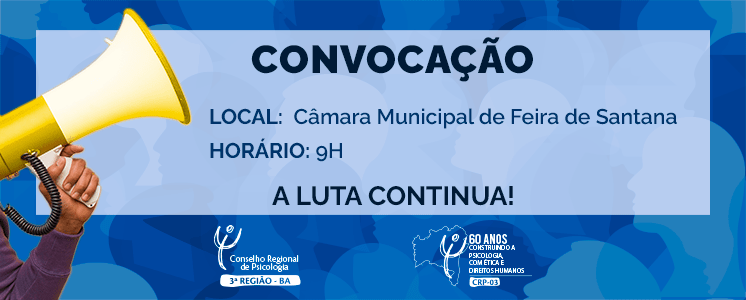 Amanhã (30/06), psicólogas/os e assistentes sociais estarão mobilizadas/os, na Câmara Municipal de Feira de Santana, às 9h, para derrubar veto ao Projeto de Lei que garante Psicologia e Serviço Social na rede pública municipal de ensino.