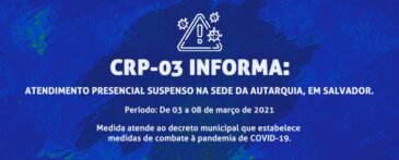 O Conselho Regional de Psicologia da Bahia (CRP-03) informa que o atendimento presencial está suspenso na sede da autarquia, em […]
