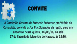 Comissão Gestora convida psicólogas/os para reunião em Vitória da Conquista