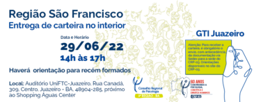 A Comissão de Interiorização do Conselho Regional de Psicologia da Bahia (COMINTER) realizará entrega de Carteira de Identidade Profissional (CIP) […]