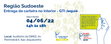 No dia 04/06/2022, o Conselho Regional de Psicologia da Bahia (CRP-03), por meio da Comissão de Interiorização (COMINTER), realizará entrega […]
