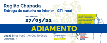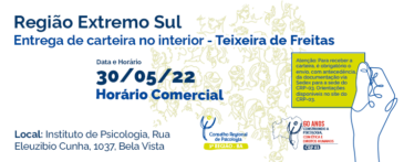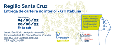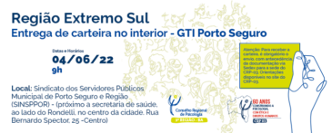 No dia 04/06/2022, a Comissão de Interiorização (COMINTER) do Conselho Regional de Psicologia da Bahia (CRP-03) realizará entrega de Carteira […]