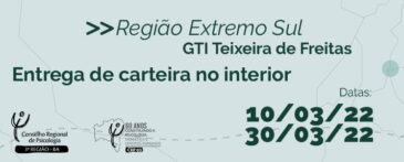 O Conselho Regional de Psicologia da Bahia (CRP-03), por meio da Comissão de Interiorização (COMINTER), realizará entrega de Carteira de […]