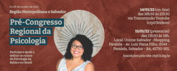 Nos dias 14 e 15 de janeiro de 2022 ocorre o Pré-Congresso Regional da Psicologia Salvador e Região Metropolitana