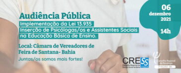 CRP-03 e CRESS-BA participam de audiência pública para debater a implementação da lei que insere psicólogas/os e assistentes sociais nas escolas