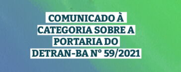 Comunicado à categoria sobre a portaria do DETRAN-BA Nº 59/2021
