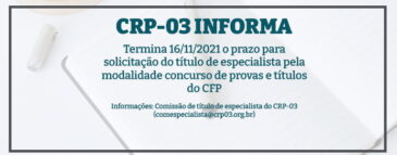 O Conselho Regional de Psicologia da Bahia informa que termina em 16/11/2021, o prazo para solicitação do título de especialista […]