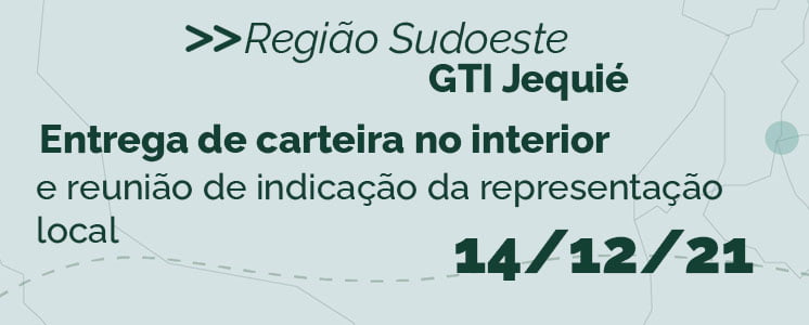 A Comissão de Interiorização do Conselho Regional de Psicologia da Bahia (COMINTER) realizará entrega de Carteira de Identidade Profissional (CIP) em Itabuna nos dias 20 de dezembro de 2021 e 20 de dezembro de 2022. A atividade será realizada no Auditório da Clinica-Escola da UNIFTC Jequié, na rua Dom Pedro II, n 226, Centro, terceiro andar do edifício CENOMED, Jequié.
