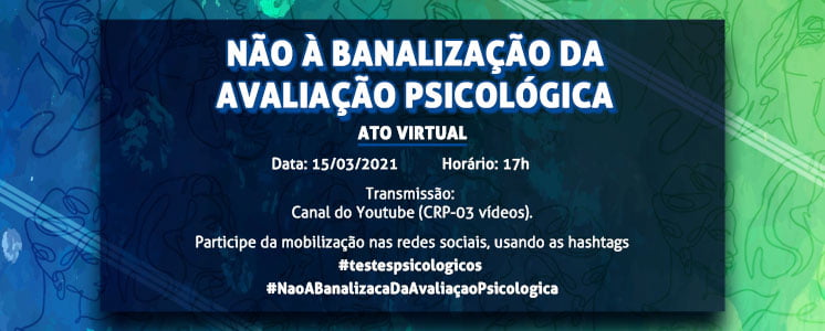 Tudo pronto para o ato virtual Não à banalização da Avaliação Psicológica, que começa às 17 horas no canal do Youtube (CRP-03 vídeos).