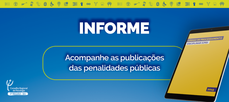 O Conselho Regional de Psicologia da Bahia (CRP-03) informa sobre penalidades públicas da Comissão de Ética da autarquia: