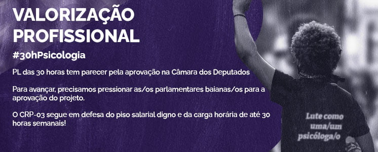 O Conselho Regional de Psicologia da Bahia (CRP-03) informa à categoria de psicólogas/os que o Projeto de Lei 1214/2019, mais conhecido como PL das 30 horas, teve parecer pela aprovação na Câmara dos Deputados.