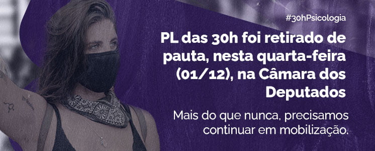 O Conselho Regional de Psicologia da Bahia informa que o Projeto de Lei 1214/2019, mais conhecido como PL das 30 horas, foi retirado de pauta da Comissão de Seguridade Social e Família (CSSF) da Câmara dos Deputados, nesta quarta-feira (01/12), a requerimento da deputada Adriana Ventura.