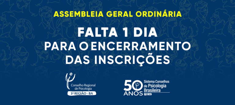 A Assembleia Geral Ordinária está marcada para o dia 31 de agosto, a partir das 9h, em primeira convocação, e às 9h30, em segunda convocação com qualquer número de psicólogas/os presentes. O evento online terá como pauta a prestação de contas de 2023, aprovação do valor da anuidade, taxas e emolumentos para o exercício de 2024.