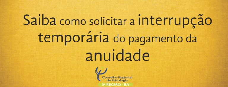 De acordo com a Resolução Nº 03. 2007 do Conselho Federal de Psicologia (CFP), a/o Psicóloga/o pode solicitar a interrupção temporária do pagamento da anuidade por motivo de doença e/ou viagem. Os critérios previstos pela Resolução para solicitar a suspensão temporária do pagamento são: