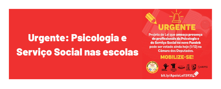 Neste momento, torna-se urgente nos mobilizar, acionar as(os) parlamentares de todos os estados para que elas(es) aprovem a emenda que garanta a presença de profissionais da Psicologia e do Serviço Social no Fundeb e, por consequência, na rede pública de educação básica.