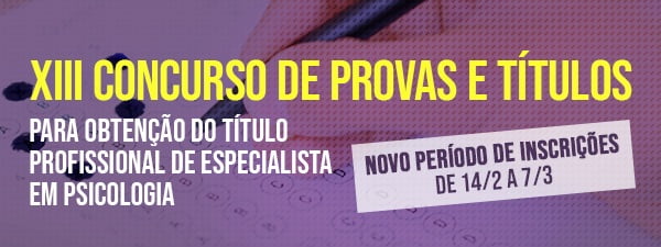 O Conselho Federal de Psicologia (CFP) reabriu as inscrições para o XIII Concurso de Provas e Títulos para Concessão do Título Profissional de Especialista em Psicologia.